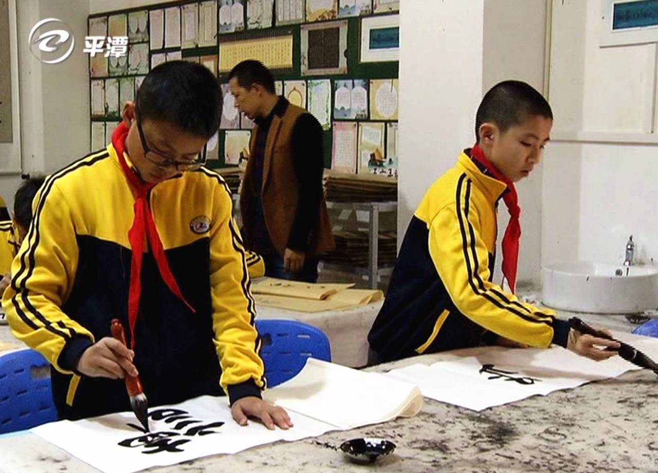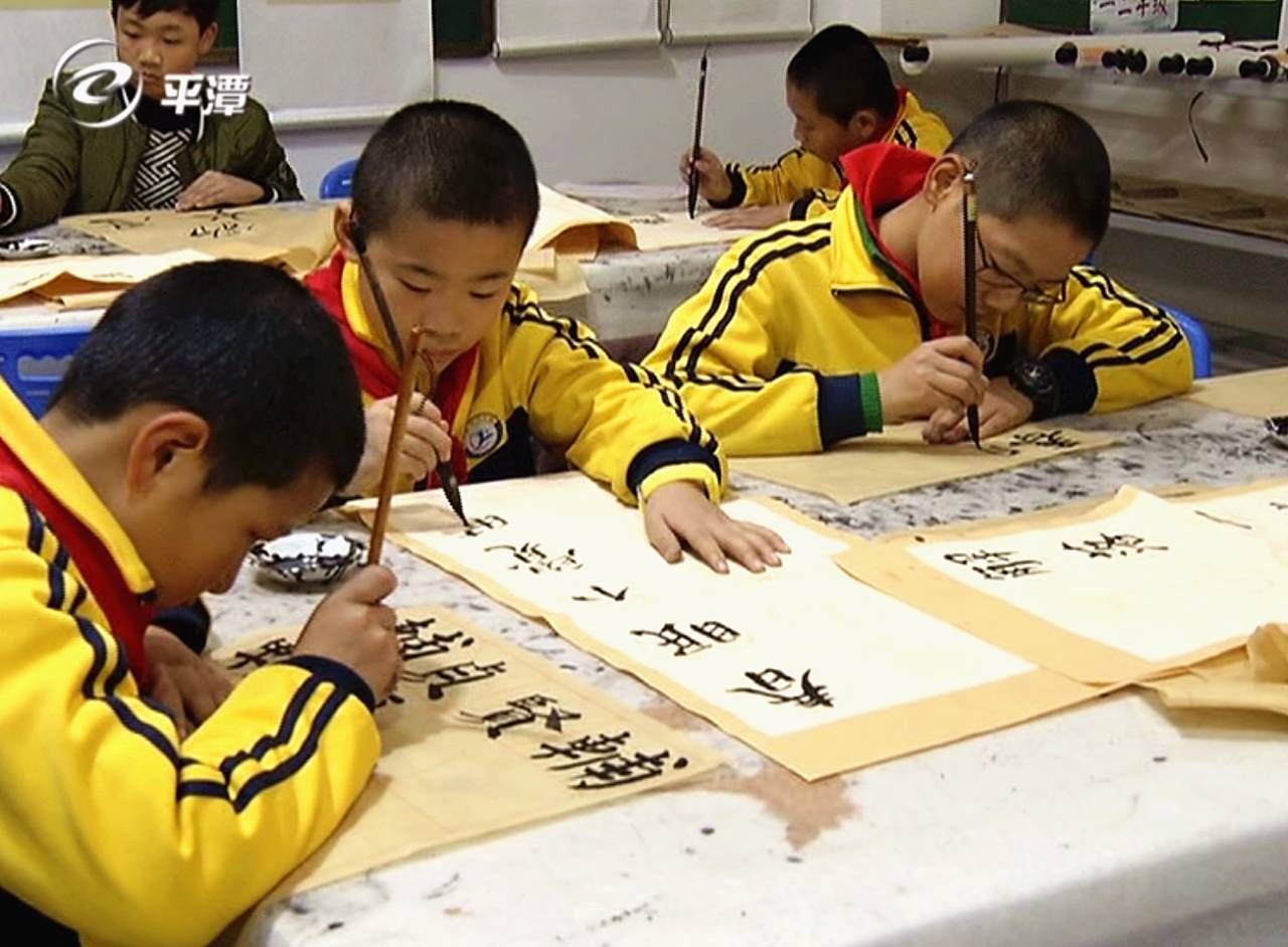 老师 林立:我们从双姿抓起,就是学生的坐姿和握姿。这是每天都必抓的,我们就是采取全校老师对学生进行齐抓共管。我们老师也两周一次听取书法讲座和书法训练,训练目的就是提高我们老师的书法水平,以便更好地指导学生。