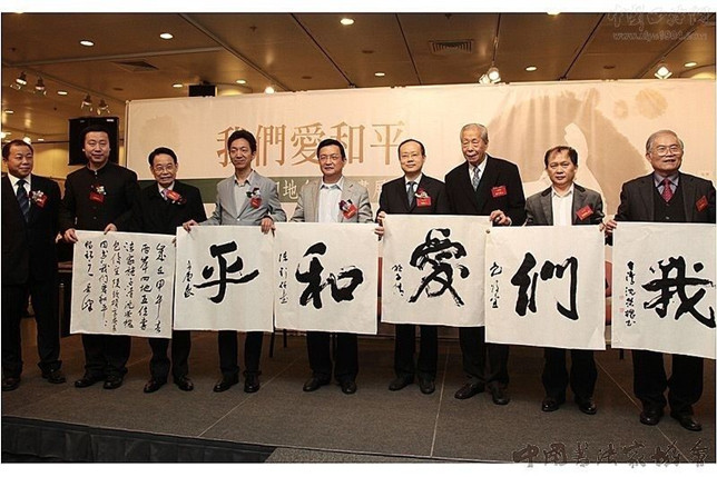 2014年3月7日,“我们爱和平——两岸四地书画名家作品展”在香港中央图书馆隆重开幕。此次展览由中国外文局、中国书协国际交流委员会、中国文化传媒集团主办,人民画报杂志社、中国书法家协会香港分会、香港和平文化交流中心承办。中央人民政府驻港联络办副主任杨健,中国书协香港分会主席施子清,著名出版家蓝真,香港特区政府康文署助理署长吴志华,香港美术协会主席萧晖荣,台湾中国书法学会理事长沈荣槐,香港和平文化交流中心总裁谢刚,中国书协理事包俊宜、白景峰、高庆春、陈钦硕等两岸四地书法家、各界人士共500多人出席开幕式。