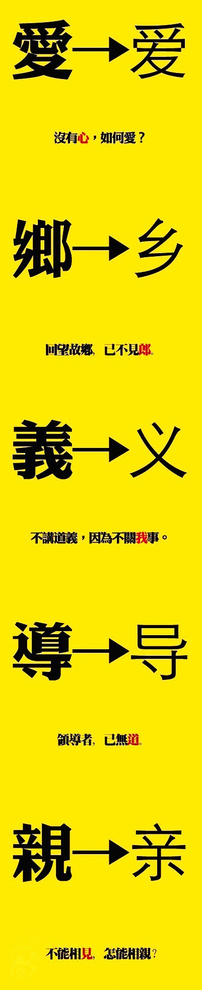 “爱”对“愛”说:我没有心,却有朋友。