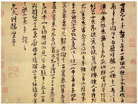 朱熹自幼跟随父亲朱松及武夷三先生刘子翬、刘勉之、胡审习字,尝学曹孟德书,后攻钟繇楷书及顏真卿行草,一生临池不輟,书法造诣精湛,笔墨雄瞻,超逸绝伦。自古以来,传世墨迹,虽是断简残编,都被奉如至宝加以珍藏。虽然历史上其书法艺术为人推崇备至,而一生曾写下的书迹也不少,遗憾的是失传居多。明陶宗仪《书史会要》:“朱子继续道统,优入圣域,而于翰墨亦工。善行草,尤善大字,下笔即沉着典雅,虽片缣寸楮,人争珍秘,不啻兴圭壁。”书法初学汉魏崇尚晋唐,主张复古而不泥古,独出已意,萧散简远,古澹和平,非流俗所敢望,大有晋人风致。 他思想学说的盛名,把其书法艺术的光芒掩却了。朱熹善行、草、尤善大字,现今传世作品以行书简牍為主,大字墨很少。