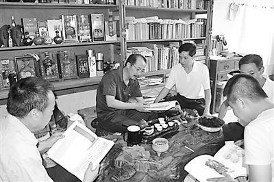 黄承财就住在玉山村。在众人的眼中,这位爱写字的山里人是个豪爽、热情、乐于助人的人。书画界的朋友们都叫他“才哥”,一是因为他有才,二是因为他年纪相对大些,为人又仗义。