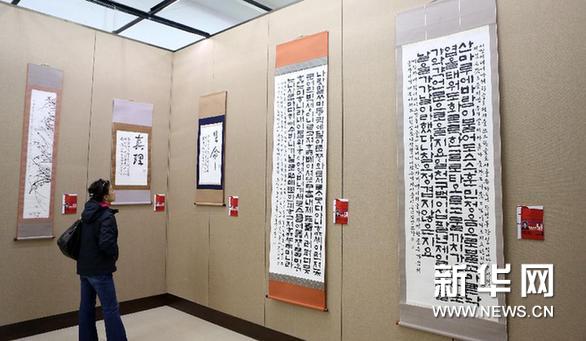 新华网沈阳10月28日电 当日,第三届中韩美术书法交流展在辽宁美术馆开幕,238幅美术、书法作品展现了中韩两国艺术家各具特色的艺术表现力。