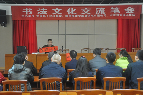 2月2日,福建省教育学会书法教育委员会理事、书法报特约记者、书法报安溪工作站王全福站长到安溪检察院,与各检察院书法爱好者、电力公司书法爱好者们举行交流笔会活动,传授春联书写技巧。经过努力共预先书写春联400多副,准备好春联稿,于次日在检察院广场举行“新春赠联 情暖茶乡”现场书赠春联活动。
