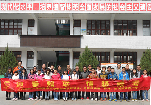2月8日,书法报安溪工作站在做好充分准备工作后,与安溪书法家协会会长王乃通先生、安溪楹联学会理事詹金才先生及各高校返乡大学生十余人,驱车到离县城近百公里的著名茶乡感德镇霞春中学,在安溪县霞春中学教育发展促进会、安溪县霞春中学领导师生的大力支持下,在中学运动场举行“迎春赠联 情暖霞春”现场书赠春联活动。