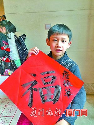 现场还评选出20名“厦门优秀小小书法家”,他们写的“福”字张贴在厦门院子的“百福墙”上,给住户送去祝福。