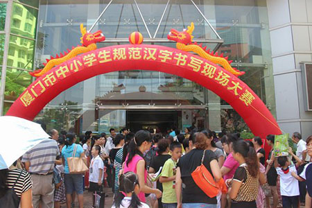 为加强中小学生规范汉字书写教育,引导青少年热爱祖国文字和书法艺术,提高学生规范汉字书写水平,由厦门市语委主办,厦门市青少年宫承办的2013年厦门市中小学生规范汉字书写现场大赛于9月14日和9月15日分别在厦门市青少年宫(岛内场)和厦门同安一中(岛外场)顺利举办。参赛的500多名选手是从近5000人的初赛选手选拔出来的,要求参赛选手不得使用繁体字、异体字、二简字,不得出现自造字和错别字。现场大赛得到了全市中小学校的大力支持,体现了我市中小学生汉字书写水平的进一步提高,对于培养我市青少年丰厚的人文素养和审美情趣,继承和弘扬中华优秀文化传统具有重要影响。由陈美祥、梁景湖、李诗斌、郑锡周、方荣报等书法专家老师对学生的作品进行评选,从中选拔出优秀的作品参加第五届福建省学生规范汉字书写大赛。