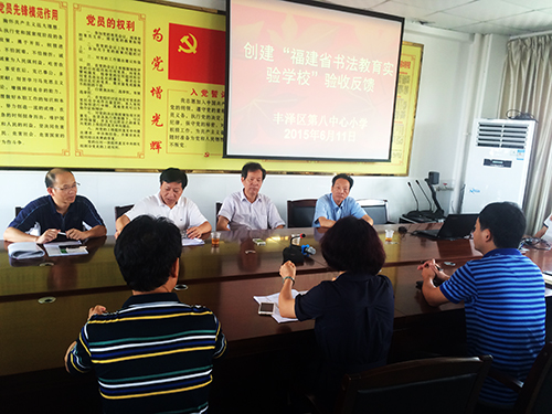 验收组一行,对泉州市丰泽区第八中心小学申报省级“书法教育实验学校”给予高度评价和肯定。一致认为,该校书法教育理念新、有思路、有措施、有成果,以及学校对书法教育经费的投入很大,学校营造的书法氛围相当浓厚。在验收反馈的总结发言中,陈小敏会长当场宣布丰泽区第八中心小学通过省级验收,授予该校“福建省书法教育实验学校”称号。