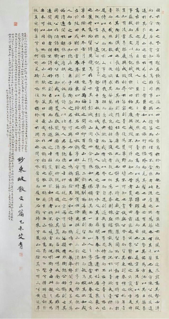 全国书法篆刻展被称为“书法奥林匹克”,每四年举办一届。本届展览共收到作品42572件,从中选出703件入展作品,最终42位优秀奖作者脱颖而出。艾青老师曾在第九届国展以小楷作品入围,第十届国展以行书入围,本届以中楷作品问鼎全国最高奖。
