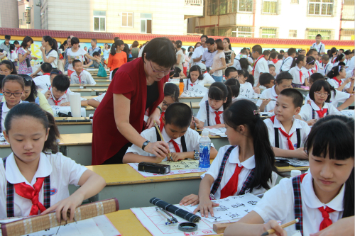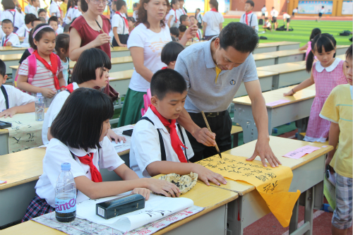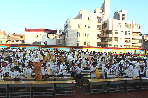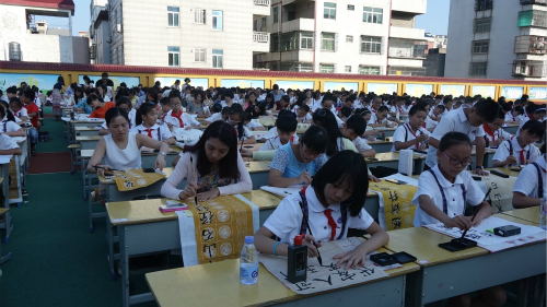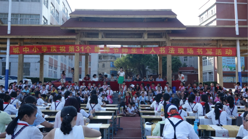 本次千人师生现场书法活动,为教师节献上一份特殊“礼物”,展现了城中小学全体师生尊师重教的优良传统,同时又是作为省级书法教育实验校的一次展示书法教育成果的盛会。
