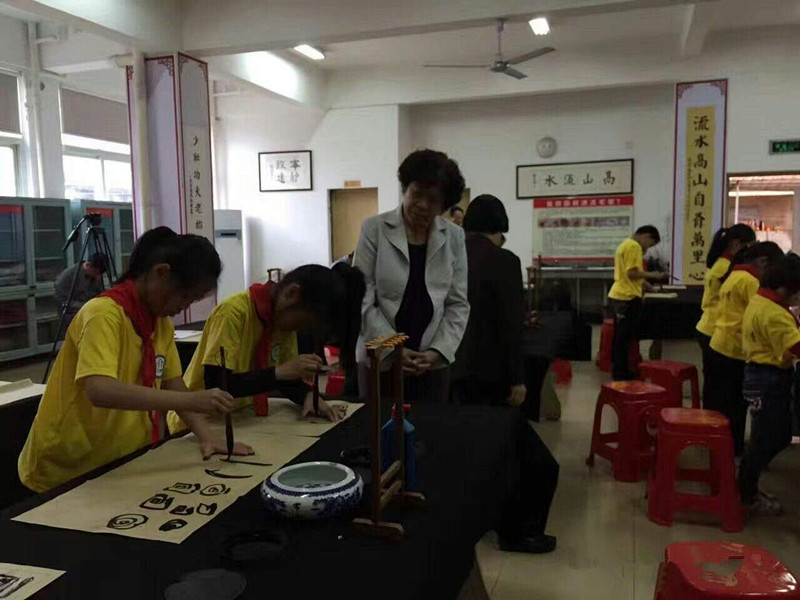 验收组专家和区领导一行在学校黄东旭校长、刘兴法副校长的陪同下参观了飘满墨香的河市中心小学校园,听取了黄东旭校长对学校的“翰墨园”、“书法室”、“校史馆”、“图书室”等校园书法小景的介绍。杨淑琴秘书长对学校在润物无声的校园书法文化构建方面给予了充分肯定和高度评价。