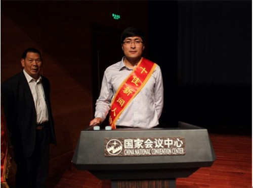 近日,在北京国家会议中心举行的第二十一届中华大地之星征文颁奖活动上,山东临沂药监局河东分局的著名年轻书法家嵇文敏被授予“中华大地之星十佳新闻人物”荣誉称号,全国人大副委员长周铁农、国务院国资委中国煤炭城市发展联合促进会会长步云吉等国家领导人为获奖者颁发了奖杯及荣誉证书。
