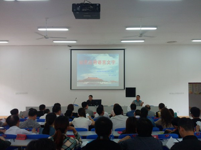 培训会上,永泰县教师进修学校办公室主任黄永生应邀作了题为《规范应用语言文字》的讲座。他从语言文字规范化的含义、语言文字规范化的重要性、语言文字规范化的必要性、语言文字规范化的历史、语言文字规范化的依据、语言文字规范化的常用内容等6个方面作了深入浅出的讲解。本次培训进一步增强了永泰县各级各类学校对语言文字规范化工作重要性的认识,提升了学校语言文字工作规范化水平,为加快推进全县创建国家三类城市语言文字达标县工作进程打下了坚实基础。