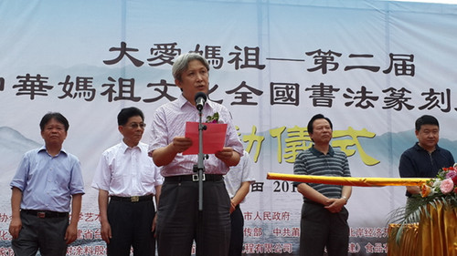 中共莆田市委书记梁建勇宣布“大爱妈祖——第二届中华妈祖文化全国书法篆刻大展”正式启动