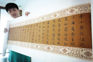 上了初中后,课程多了,可马浩纬并没有放弃书法,除了在学习班跟着老师学习,在家里他也要抽出时间来临摹练习。“无论以后学习怎么紧张,我都不会放弃对书法的热爱,我要长期坚持下去。”目前,在国家教育部举办的中国书画等级考试中,马浩纬凭借自己的实力,获得了软笔六级、硬笔八级,这在同龄人中是非常少见的。马浩纬告诉记者,现在,他将更多的精力放在软笔书法的学习和练习上,希望成为“软硬兼备”的全能型书法人才。(记者 战风)