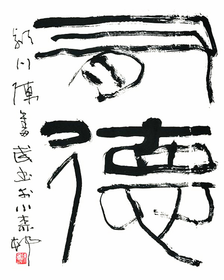 先生性格开朗,幽默风趣。写字即写人,其书亦见其趣。嘎嘎然挥笔于尺幅之中,或落落大方,平中见奇,或摇曳多姿,亦庄亦谐。君不见,一片恣肆放达之间,依稀有澹泊宁静豪情逸气充溢其上,有率真质朴情感贯注其里。先生游刃于法度之中,得情趣于笔外。此乃功力所致,天性使然。