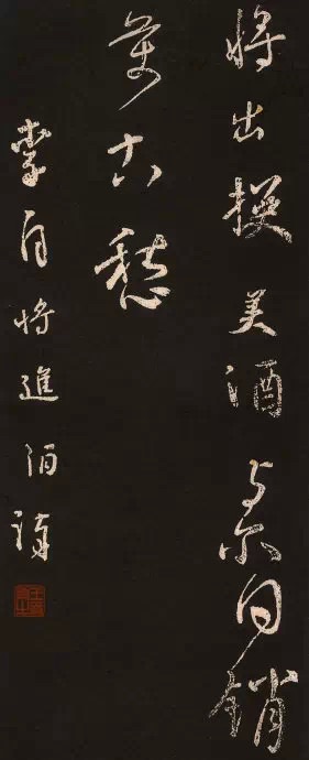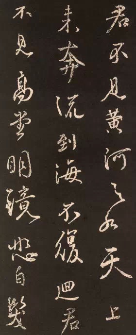 君不见,高堂明镜悲白发,朝如青丝暮成雪。人生得意须尽欢,莫使金樽空对月。天生我材必有用,千金散尽还复来。烹羊宰牛且为乐,会须一饮三百杯。岑夫子,丹丘生,将进酒,杯莫停。与君歌一曲,请君为我倾耳听。钟鼓馔玉不足贵,但愿长醉不复醒。古来圣贤皆寂寞,惟有饮者留其名。陈王昔时宴平乐,斗酒十千恣欢谑。主人何为言少钱,径须沽取对君酌。五花马,千金裘,呼儿将出换美酒,与尔同销万古愁。