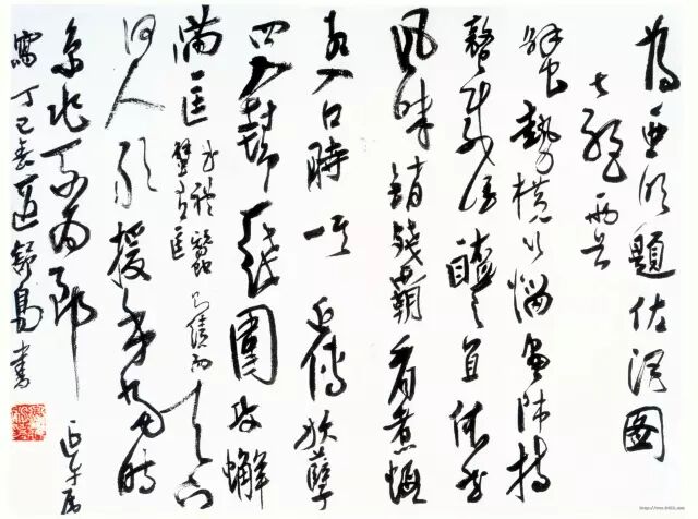 尤其是在草书创作中,草书狂放的气势、流畅的线条,这对毛笔的运用有着极高的要求,尤其是对肘的使用。悬肘书写便于草书用笔的流畅性,笔到意到,能够很好的表现出气息的连贯性。这正迎合了高二适的学书实践,他在草书创作中,用笔高悬,灵活多变,曲折尽情,气赏天外。