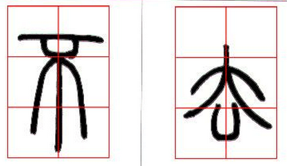 4、对称关系:线条的对称处理,是篆书的一个重要特点。如(图十二)“不”字、“去”字;(图三)“大”字、“朱”字。虽然是对称,并不是两侧绝对一样的。我们仍能从中可以看出变化而又动态的对称。