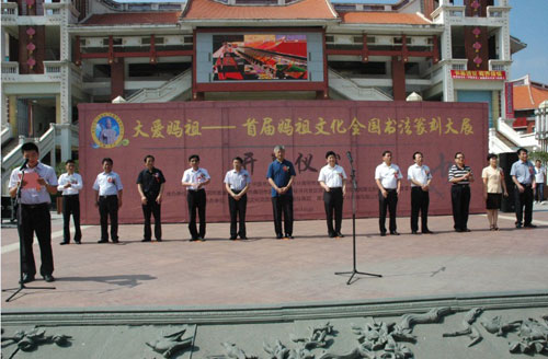 10月10日上午,首届中华妈祖文化全国书法篆刻大展开幕仪式在莆田工艺美术城举行。省政协副主席杨根生,中国书法家协会分党组书记、驻会副主席赵长青,人民日报社福建分社社长余清楚,省台联党组书记、省台办副主任蔡尔申,省书法家协会副主席方松峰,市领导翁玉耀、程强、张丽冰,中华妈祖文化交流协会常务副会长林国良出席。