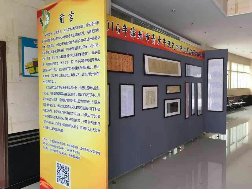 金秋时节,硕果飘香。正值第32个教师节之际,由共青团漳州市委员会、市教育局、市青少年宫协会主办,市青少年活动中心、市青少年宫承办,市硬笔书法家协会、漳州惠聪教育协办的2016年漳州市青少年硬笔书法比赛优秀作品展于2016年9月10日至17日将在龙文区漳州青少年活动中心隆重举行。此次展出的优秀师生作品150多件,是从比赛征集的5827件作品中精心挑选出来的,真草隶篆,各体兼备,能较全面地体现当前漳州市师生硬笔书法的整体水平。